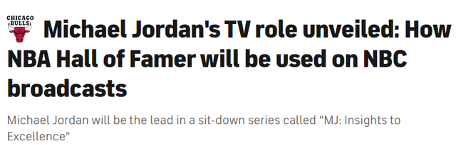 乔丹参与NBA转播细节曝光:常驻固定板块分享看法 以录播片段呈现